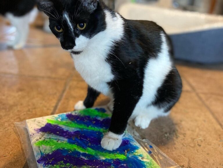 As we were trapping a colony in the middle of Las Cruces, a small kitten dragged himself up to us. He’d take two steps, fall over, and then drag himself a few feet. He allowed us to put him in a carrier and we immediately ran this kitten, who we named Arthur, to Schumacher Animal Hospital. X-rays revealed two shattered hips, and Dr. Kyle told us it was likely that this beautiful boy had been kicked or abused in some way.
